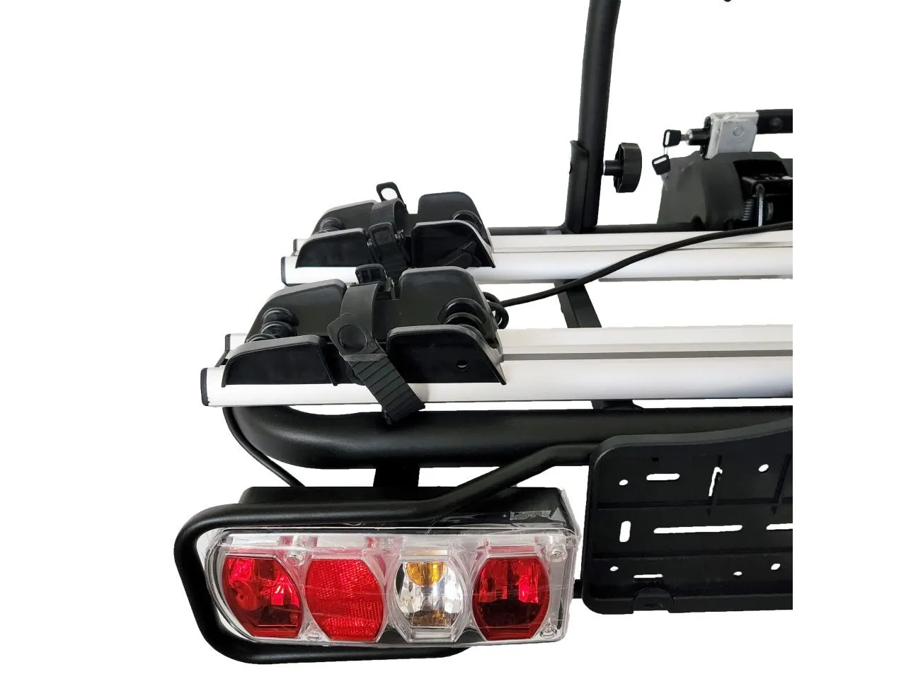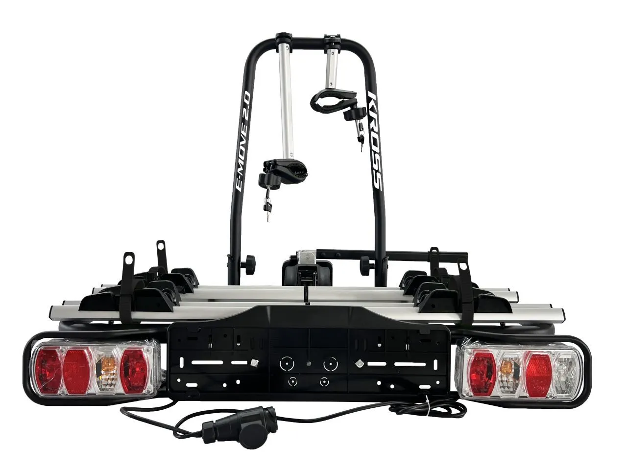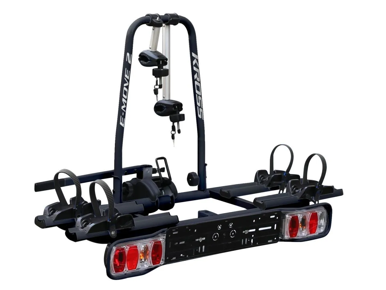 E-Move 2.0 to kompaktowy bagażnik rowerowy montowany na hak holowniczy, idealny do przewozu dwóch rowerów, zarówno elektrycznych jak i tradycyjnych. Wykonany z lekkiego aluminium, zapewnia łatwy montaż i demontaż. Po złożeniu mieści się w większości bagażników samochodowych.