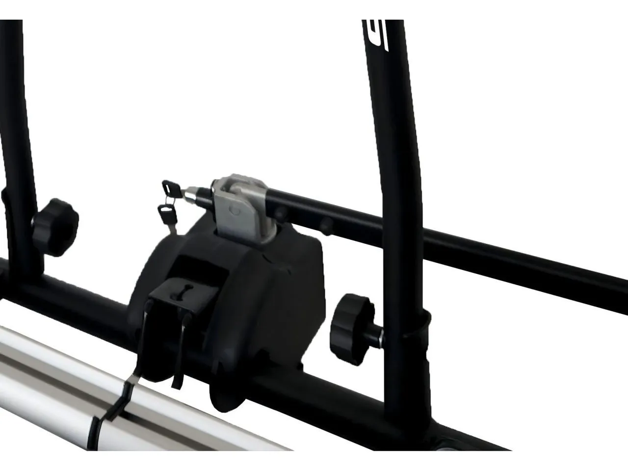 Bagażnik wyposażono w system podwójnych uchwytów, który zapewnia stabilny transport rowerów, minimalizując ryzyko ich przemieszczania się w trakcie jazdy.