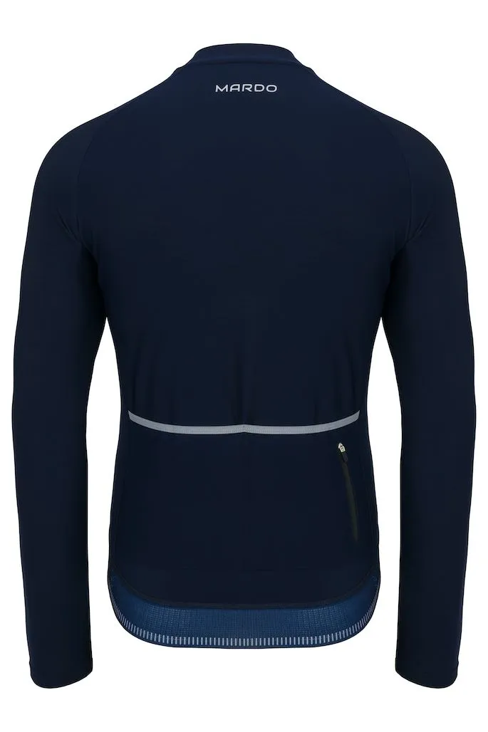 Ocieplana bluza kolarska Mardo w kolorze granatowym to doskonałe połączenie komfortu i funkcjonalności. Elastyczny materiał gwarantuje swobodę ruchów, a krótszy przód i wydłużony tył eliminują podwijanie się bluzy.