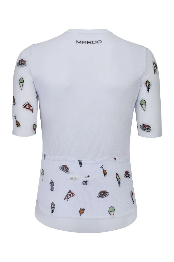 Stworzyliśmy ten wzór specjalnie dla Was, zainspirowani włoskimi klimatami, takimi jak kawa, lody, tiramisu, wyścig kolarski Giro d’Italia i oczywiście pizzą! Wyprofilowany krój koszulki rowerowej zapewnia optymalny komfort i aerodynamikę, co pozwoli osiągać jeszcze lepsze wyniki oraz zwiększy efektywność Twojej jazdy.