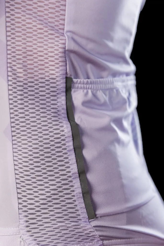 Jako że sami jeździmy na rowerze, to wiemy, jak ważne jest, aby odzież kolarska zapewniała komfort, szczególnie podczas długich, wielogodzinnych tras. Oprócz właściwie dobranych materiałów ta koszulka to także bezszwowo wykończone rękawki raglanowe. Po wewnętrznej ich stronie znajduje się dodatkowo silikon, który zapobiega otarciom i sprawia, że rękawki nie zawijają się podczas jazdy. Kolejnym elementem, który wpływa pozytywnie na komfort użytkowania, jest panel boczny wykonany z siatki, która efektywnie odprowadza pot. Z przodu umieściliśmy szeroką taśmę z silikonem, dzięki której koszulka nie podwija się do góry.