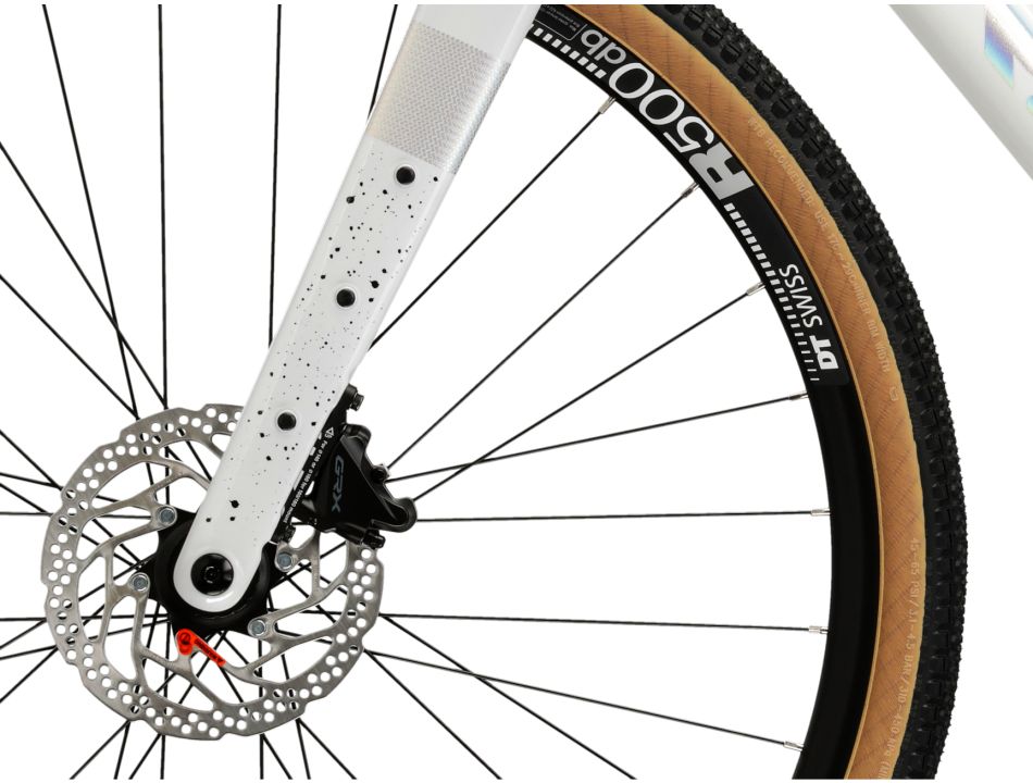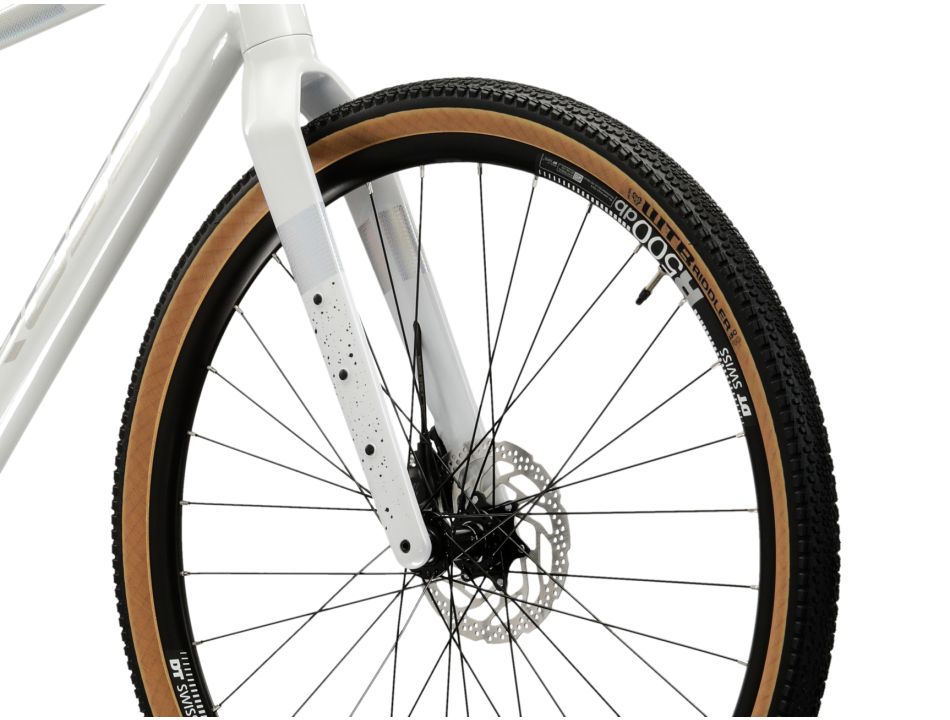 Dopełnieniem konstrukcji jest lekki karbonowy widelec z wewnętrznym prowadzeniem przewodu hamulcowego oraz kompatybilnością z amortyzatorami gravelowymi o skoku 30 mm.