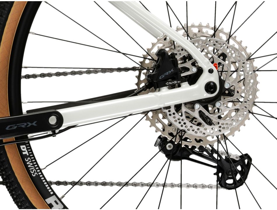 Napęd Shimano GRX w systemie 1x12 oraz hydrauliczne hamulce tarczowe gwarantują pełną kontrolę na każdym szlaku – zarówno na szybkich asfaltowych odcinkach, jak i na wymagających drogach szutrowych.