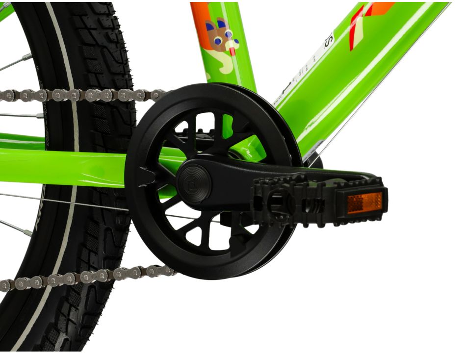 Sercem konstrukcji jest rama wykonana z aluminium 6061, które zapewnia korzystny balans między sztywnością a odpornością na uszkodzenia. W połączeniu ze sztywnym widelcem rower zyskuje stabilność prowadzenia, a jednocześnie pozostaje lekki i łatwy do manewrowania - to szczególnie ważne w przypadku młodszych użytkowników. Obniżony przekrok ramy ułatwia wsiadanie i zsiadanie, co buduje pewność siebie podczas nauki oraz codziennej jazdy. Za hamowanie odpowiadają hamulce V-brake, cenione za prostą regulację, niską masę i skuteczne działanie w typowych warunkach użytkowania. Przyczepność i komfort na nierównościach wspierają szerokie opony CST BEYOND BY-122 20x1.90, które dobrze trzymają się nawierzchni i pomagają rowerowi zachować stabilność. Całość dopełniają dopasowane komponenty, w tym siodło Selle Royal Explora JR oraz chwyty Hermans, a masa roweru to około 9,8 kg, co ułatwia dziecku kontrolę nad rowerem.