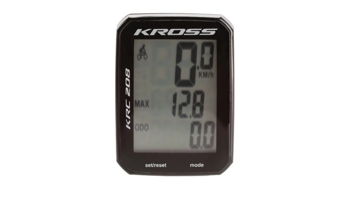 Licznik Kross KRC 208 to akcesorium przydatne podczas krótszych i dłuższych wypraw rowerowych. Przedstawia 8 podstawowych wskazań pozwalających kontrolować zaplanowaną trasę. Posiada dwie funkcje czasu: zegar, do wyboru w trybie dwunasto- lub dwudziestoczterogodzinnym oraz licznik czasu jazdy. Licznik Kross KRC 208 mierzy dystans całkowity i dzienny, prędkość aktualną oraz maksymalną, a także średnią prędkość użytkownika.