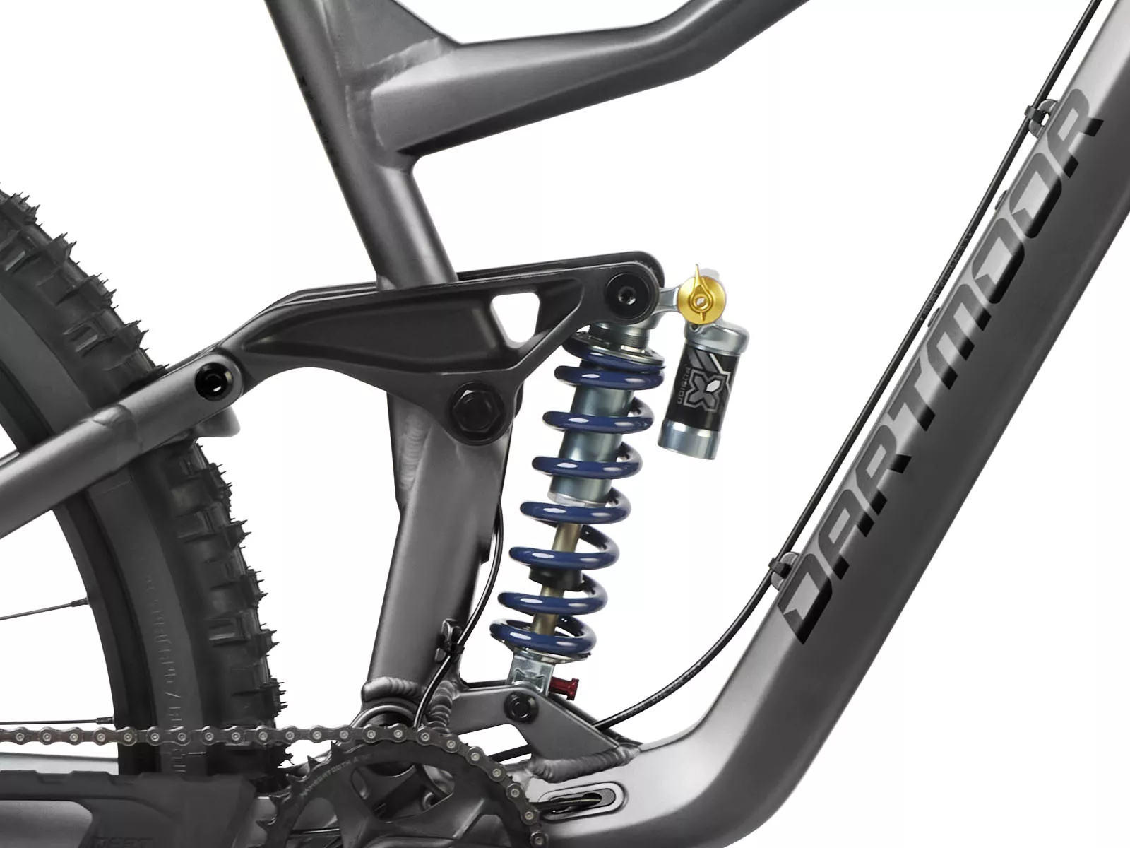 W modelu zastosowano wysokiej klasy zawieszenie X-Fusion, które odpowiada za skuteczne tłumienie w trudnych warunkach. Widelec X-Fusion Trace 36 RC zapewnia sztywność i dokładne prowadzenie, natomiast amortyzator X-Fusion H3C RCP z możliwością doboru sprężyny oferuje świetną reakcję na szybkie kompresje i większe dropy. Opony Vittoria Mazza 29×2.6 w technologii tubeless-ready gwarantują przyczepność i stabilność, także na luźnych nawierzchniach. Hamulce Magura MT Thirty z czterema tłoczkami zapewniają mocne, pewne hamowanie, a szeroka kierownica Dartmoor Viper 810 mm daje pełną kontrolę na technicznych odcinkach.