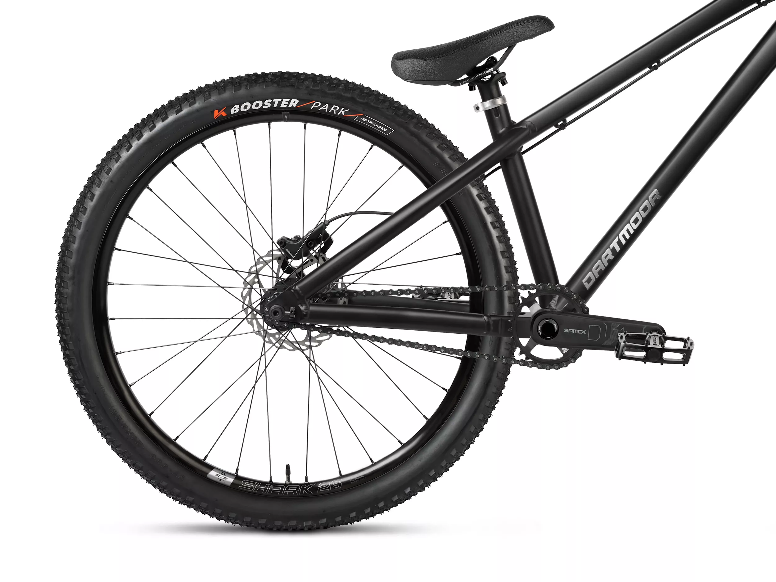 Projektując Dartmoor Two6Player Evo Midnight Black, skupiono się na maksymalnej sztywności i niezawodności. Krótki tylny trójkąt oraz odpowiednio dobrany kąt główki ramy zapewniają szybkie wybicie i pełną kontrolę w locie. Amortyzator Manitou Circus o skoku 100 mm został zaprojektowany typowo pod dirt jump, dzięki czemu świetnie radzi sobie z twardymi lądowaniami i intensywną jazdą w skateparku lub bike parku. Jednorzędowy napęd minimalizuje ryzyko awarii i pozwala skupić się wyłącznie na jeździe, a hydrauliczny hamulec tarczowy daje pewne i przewidywalne hamowanie nawet przy dużych prędkościach. Całość uzupełnia agresywny, minimalistyczny design w kolorze Midnight Black, który podkreśla charakter roweru.
