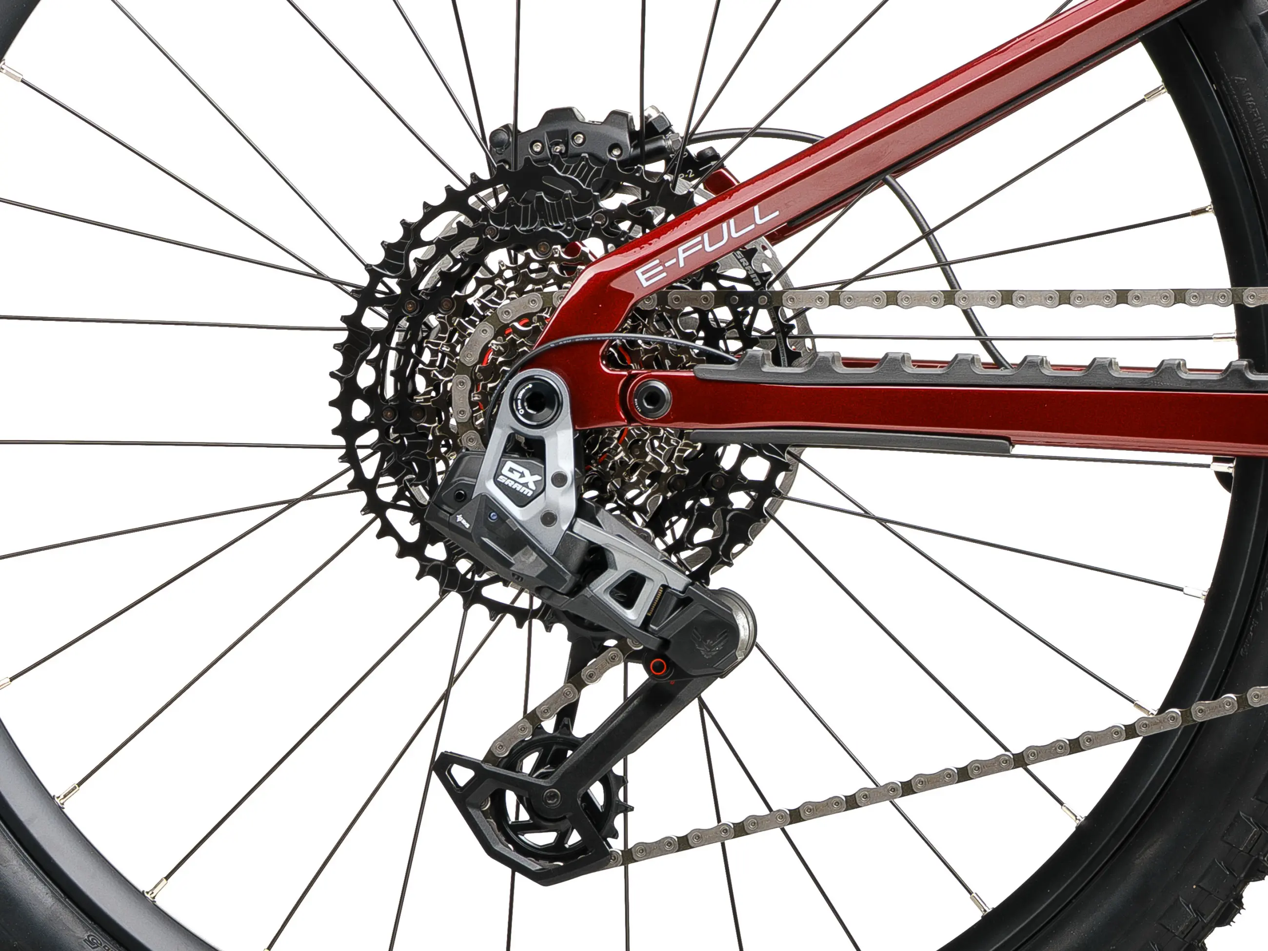 Jako karbonowy e-MTB z pełnym zawieszeniem, Crussis e-Full 12.11 800 Wh został zaprojektowany z myślą o maksymalnym komforcie i pewności prowadzenia w zróżnicowanym terenie. Zawieszenie o dużym skoku skutecznie pochłania nierówności, poprawia trakcję w zakrętach i stabilizuje rower na kamienistych, korzenistych odcinkach. Nowoczesna geometria ramy łączy stabilność przy dużych prędkościach z dobrą zwrotnością w ciasnych sekcjach, dzięki czemu rower pewnie prowadzi się zarówno na naturalnych szlakach, jak i w bikeparku. Szerokie obręcze i opony o agresywnym bieżniku zapewniają przyczepność na luźnym, mokrym i stromym podłożu. Mocne hamulce tarczowe ułatwiają kontrolę prędkości na długich zjazdach, a napęd 1x z szerokim zakresem przełożeń idealnie współpracuje z silnikiem DJI Avinox M1, pozwalając utrzymać optymalną kadencję. Regulowana sztyca, wygodna pozycja za kierownicą i dopracowane detale sprawiają, że jazda na Crussis e-Full 12.11 800 Wh jest nie tylko szybka, ale też komfortowa podczas dłuższych dni na szlaku.
