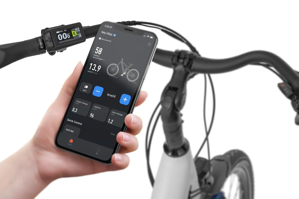 Integrację z aplikacją mobilną poprzez Bluetooth, co pozwala na pełną kontrolę nad ustawieniami roweru,