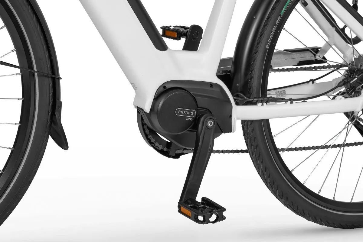 Rower elektryczny Ecobike LX100 to doskonały wybór dla osób poszukujących niezawodnego środka transportu do codziennych podróży. Wyposażony w inteligentny system wspomagania, wykorzystuje silnik Bafang® M210, który charakteryzuje się cichą pracą i doskonałym zarządzaniem mocą. Silnik ten zapewnia moment obrotowy sięgający 70 Nm, co przekłada się na płynną i dynamiczną jazdę w różnych warunkach terenowych.