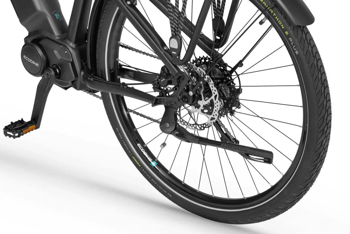 Wzmocniona rama zapewnia trwałość, a ukrycie przewodów w mostku i sterach to zarówno estetyczny, jak i praktyczny zabieg. Rower prezentuje się bardzo nowocześnie i minimalistycznie, a jednocześnie zmniejsza ryzyko przypadkowego uszkodzenia kabli podczas jazdy w trudniejszym terenie. Ecobike zadbał o każdy szczegół – to rower, który od pierwszego spojrzenia budzi zaufanie.