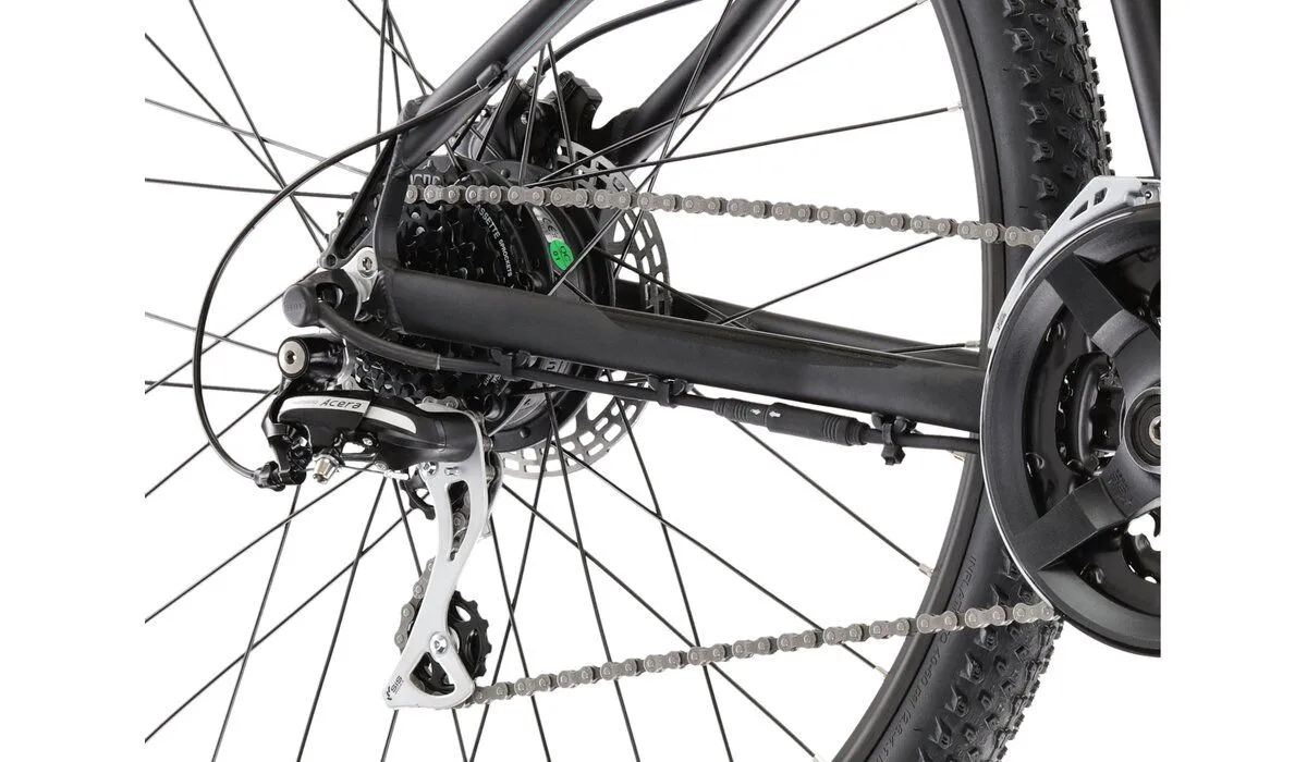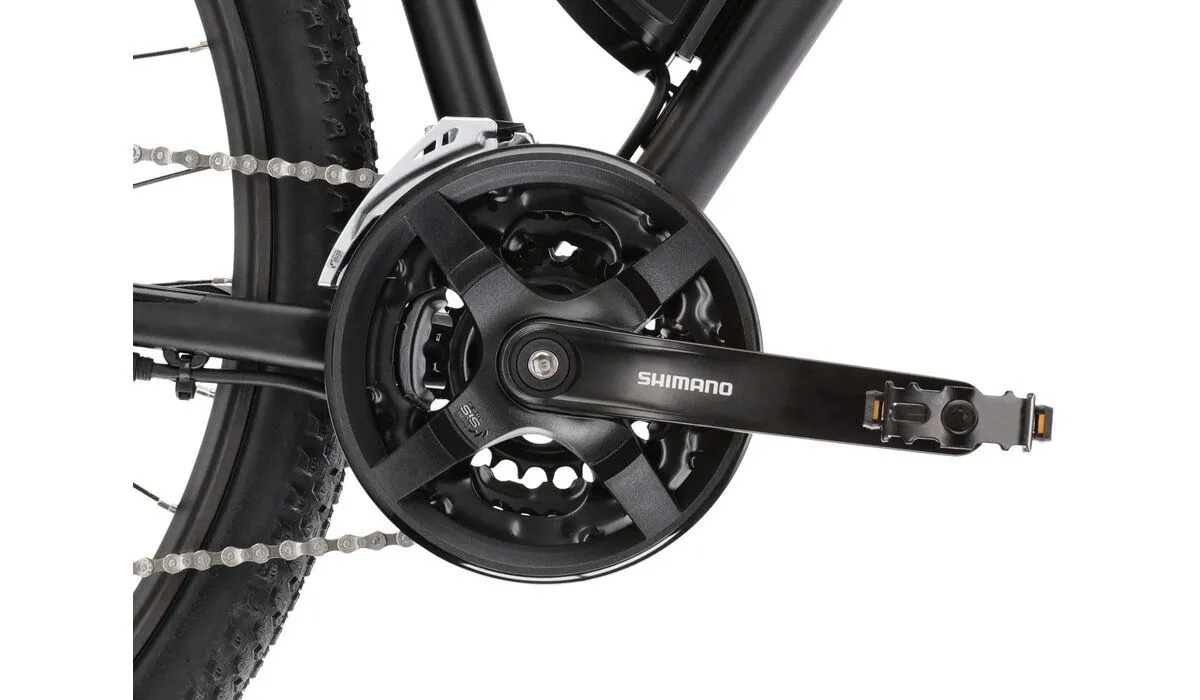 KROSS Hexagon Boost 1.0 posiada także klasyczny napęd rowerowy, na który składają się komponenty Shimano. Charakteryzują się one wysoką jakością wykonania oraz odpornością na eksploatację. Dzięki odpowiedniemu doborowi przedniej oraz tylnej przerzutki udało się nam uzyskać 24 przełożenia, które pomogą Ci odnaleźć się w każdych warunkach.