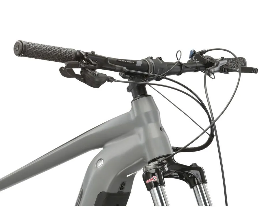 Dzięki kompaktowemu rozmieszczeniu komponentów elektrycznych i estetycznemu prowadzeniu przewodów, cały rower wygląda minimalistycznie, zachowując sportowy charakter. To doskonały przykład połączenia funkcjonalności z elegancją – KROSS udowadnia, że rower elektryczny może wyglądać stylowo i profesjonalnie jednocześnie.