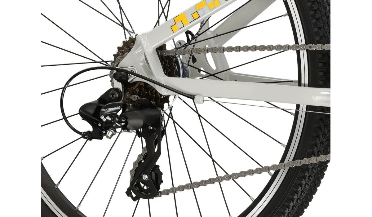Rower KROSS Dust JR 1.0 wyposażony jest w napęd w systemie 1x8, co oznacza, że posiada jedną przednią zębatkę i ośmiobiegową tylną przerzutkę Shimano Tourney TX800. Takie rozwiązanie jest idealne dla młodych rowerzystów, ponieważ upraszcza obsługę przerzutek, umożliwiając łatwe i szybkie zmiany przełożeń. Shimano Tourney TX800 to sprawdzona i trwała konstrukcja, która zapewnia płynne i niezawodne działanie, co jest kluczowe podczas pokonywania różnorodnych tras – zarówno na płaskich odcinkach, jak i podczas podjazdów.