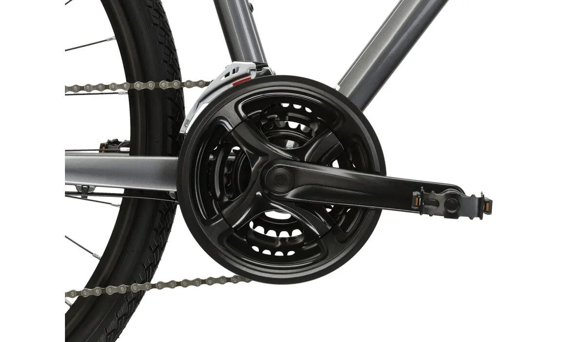 Evado 4.0 kontynuuje tradycję solidnego osprzętu Shimano. Tylna przerzutka Shimano Acera M360 zapewnia aż 24 płynne przełożenia, umożliwiając rowerzyście pokonywanie różnorodnych terenów. Wyposażenie w hydrauliczne hamulce tarczowe to kluczowy element zapewniający pewne i skuteczne zatrzymywanie się w każdych warunkach. To doskonałe rozwiązanie dla tych, którzy cenią sobie nie tylko prędkość, ale także bezpieczeństwo na drodze.