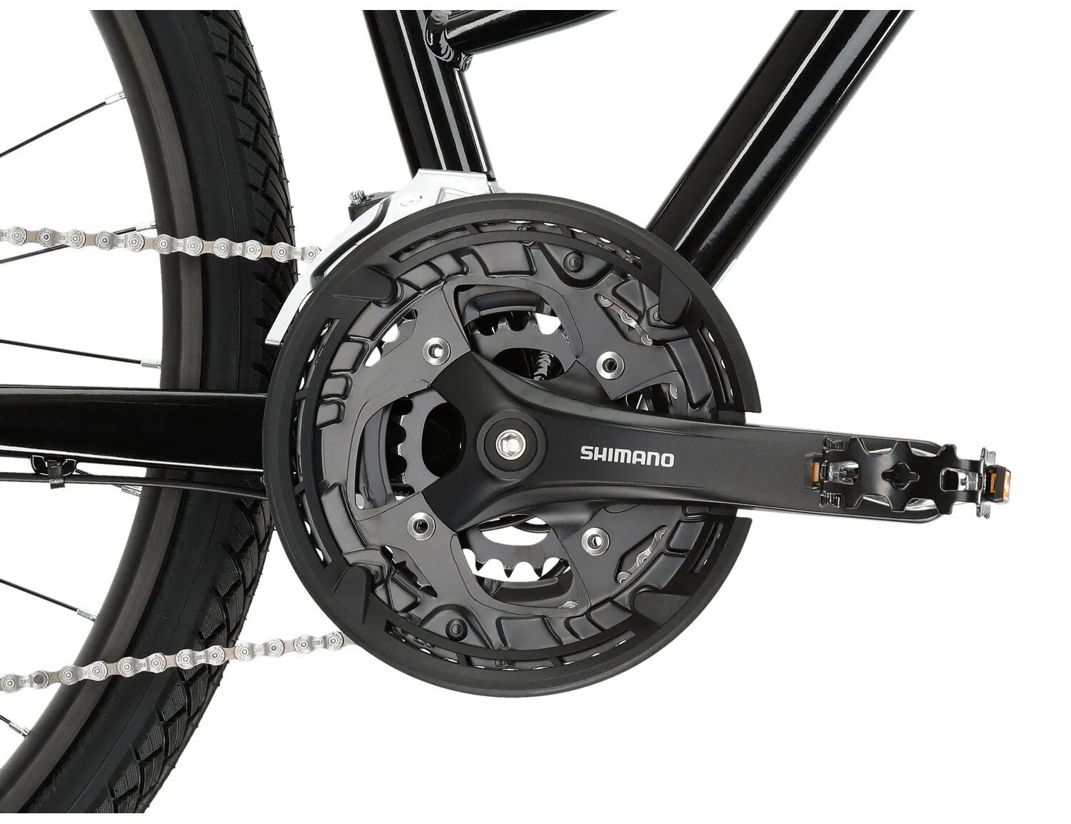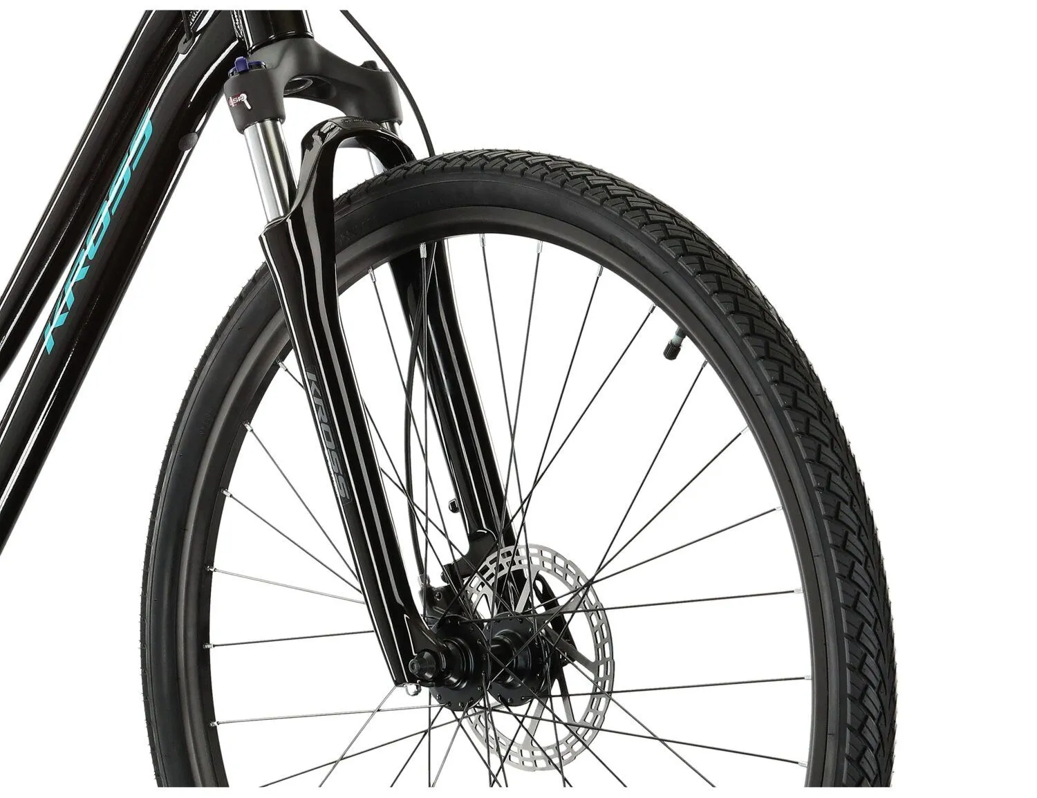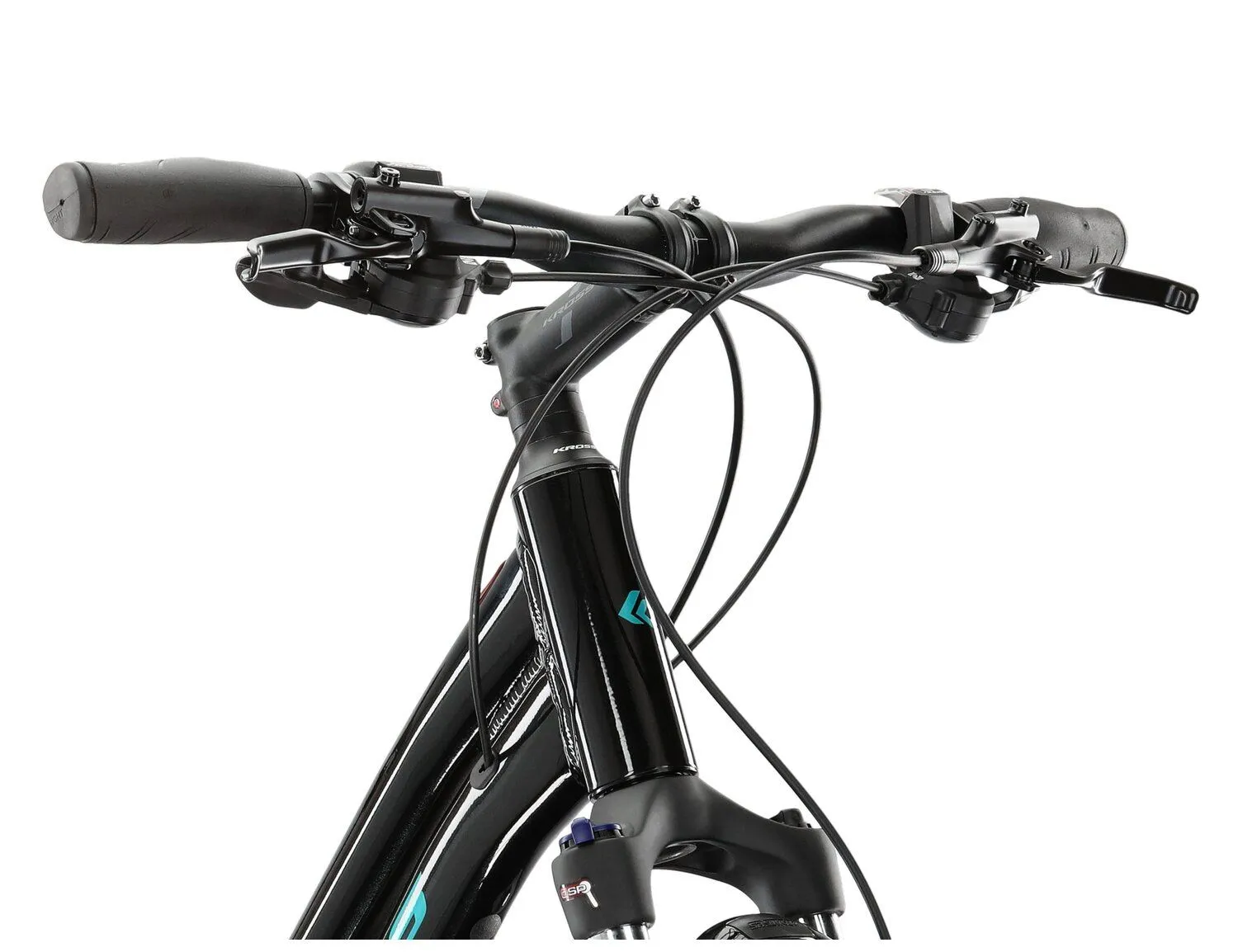 KROSS Evado 5.0 stworzyliśmy z myślą o tym, by sprawiał Ci przyjemność z pokonywania każdego kilometra trasy w jaką wyruszysz. Dlatego też wyposażyliśmy go w wysokiej jakości napęd Shimano posiadający trzyrzędową korbę oraz dziewięciobiegową kasetę. Dzięki temu do Twojej dyspozycji oddanych zostało 27 przełożeń umożliwiających komfortową jazdę w każdym terenie – zarówno miejskim jak i tym oddalonym od cywilizacji. Przerzutka tylna Shimano Acera T3000 oferuje płynną oraz szybką zmianę biegów niezależnie od warunków w jakich przyjdzie Ci jeździć. Dla Twojego bezpieczeństwa postawiliśmy na wysokiej jakości hydrauliczne hamulce tarczowe, które nie tylko oferują wysoką siłę hamowania, ale także są łatwe w serwisowaniu. W połączeniu z tarczami hamulcowymi o średnicy 160 milimetrów zapewnią Ci pełną moc hamowania zawsze wtedy, kiedy będziesz jej najbardziej potrzebować. KROSS Evado 5.0 został wyposażony w amortyzowany widelec SR Suntour Nex HLO oferuje 63 milimetry skoku, a hydrauliczna blokada znajdująca się w koronie widelca umożliwi łatwiejsze oraz skuteczniejsze pokonywanie płaskich odcinków trasy. 28 calowe koła zostały wyposażone w opony, dzięki którym nawet jazda po piaszczystej nawierzchni nie będzie stanowić dla Ciebie przeszkody.