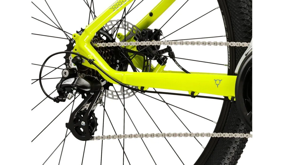 KROSS Hexagon 2.0 został wyposażony w sprawdzony napęd Shimano, który składa się z 21 biegów. Taka konfiguracja zapewnia rowerzystom szeroki zakres przełożeń, co jest niezwykle przydatne w zróżnicowanym terenie. Dzięki tylnej przerzutce Shimano Altus M310, zmiana biegów jest płynna i szybka, co przekłada się na wygodę użytkowania zarówno na stromych podjazdach, jak i na płaskich odcinkach.