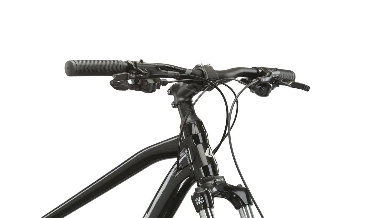 Wewnętrzne prowadzenie linek to nie tylko kwestia estetyki, ale także praktyczności. Rower prezentuje się schludnie, a system prowadzenia linek redukuje ryzyko zerwania ich w trakcie jazdy w trudnym terenie. Amortyzowany widelec SR Suntour o skoku 100 mm dba o komfortową jazdę, eliminując wibracje na nierównej nawierzchni.