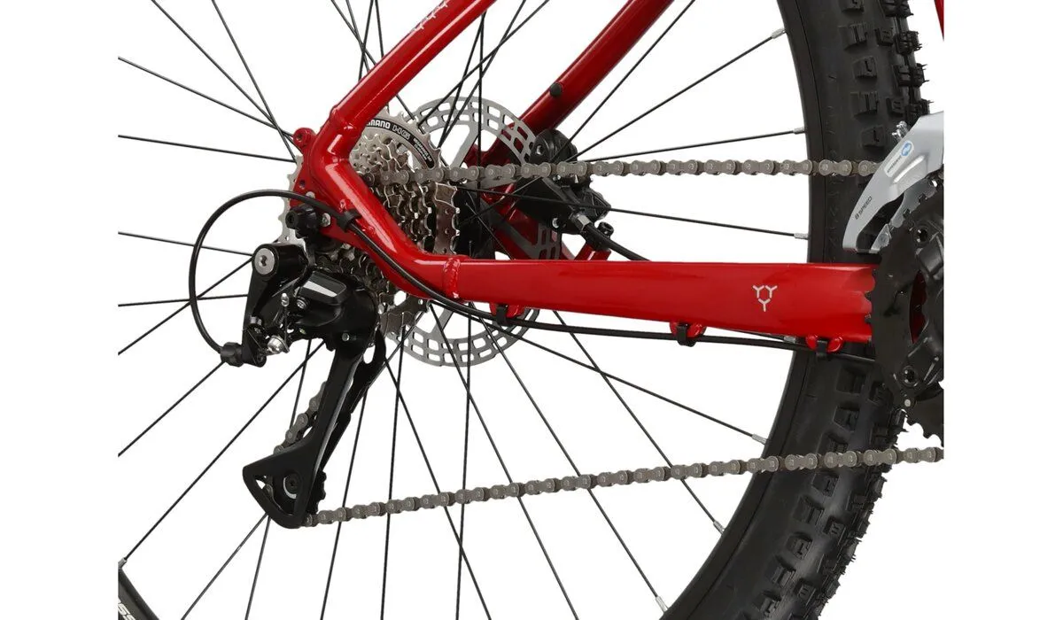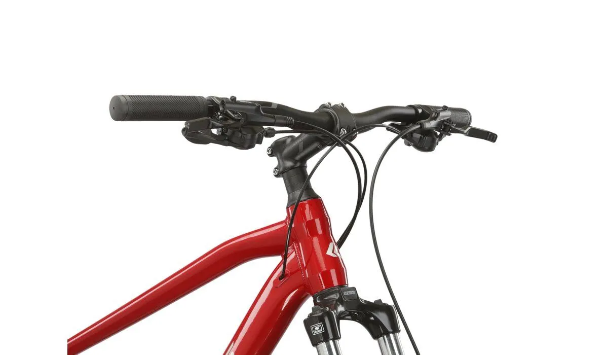 Wewnętrzne prowadzenie linek to nie tylko kwestia estetyki, ale także praktyczności. Rower prezentuje się schludnie, a system prowadzenia linek redukuje ryzyko zerwania ich w trakcie jazdy w trudnym terenie. Amortyzowany widelec SR Suntour o skoku 100 mm dba o komfortową jazdę, eliminując wibracje na nierównej nawierzchni.