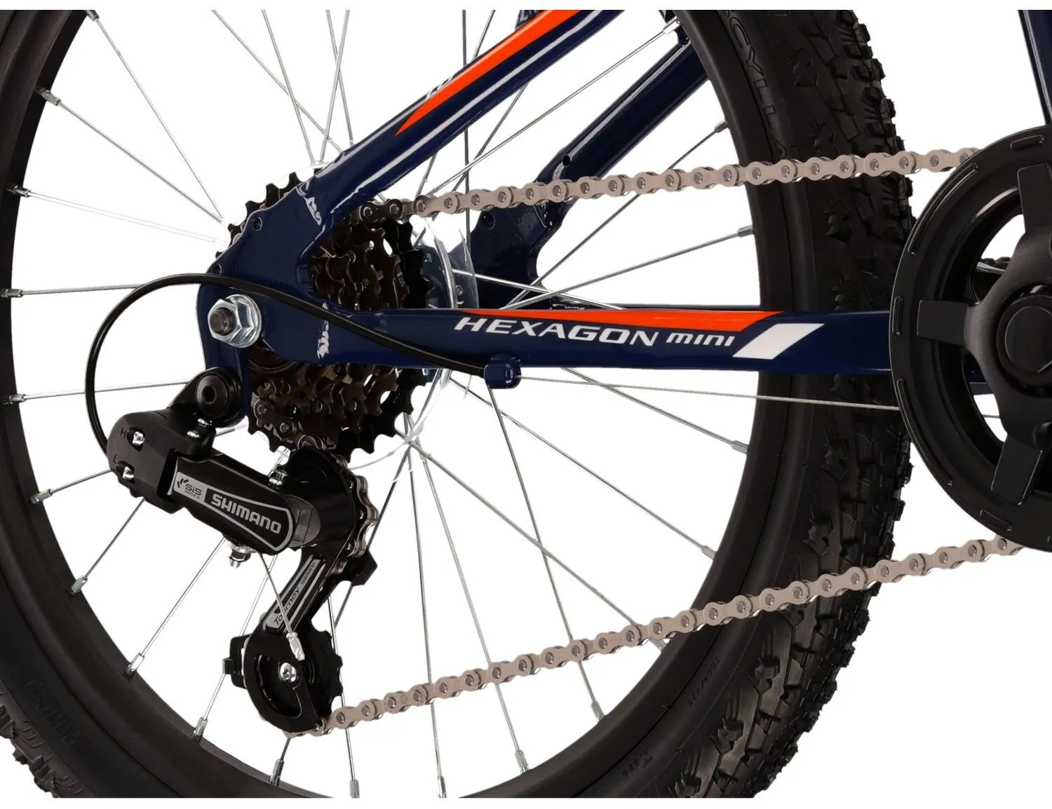 Rower dziecięcy KROSS Hexagon Mini 1.0 został wyposażony w 6 przełożeń oraz przerzutkę tylną, tak by mały kolarz mógł bez problemu odnaleźć się w każdym terenie.