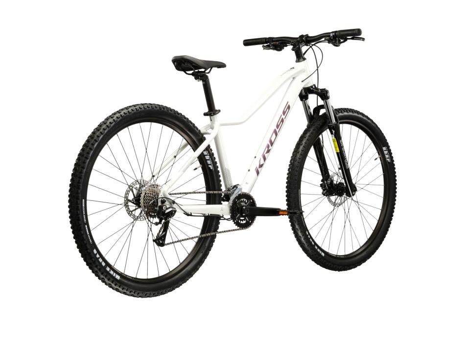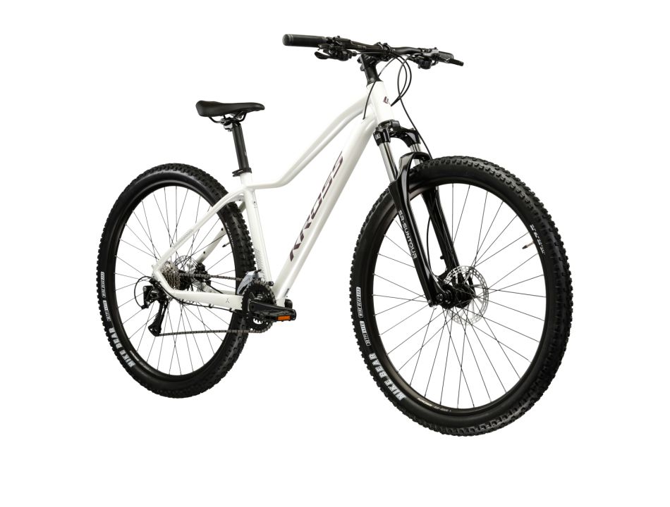 Rower KROSS Lea 4.0 to nowoczesny model roweru górskiego MTB damskiego, który łączy w sobie wszechstronność, komfort i solidne wykonanie ramy z hydrauliczne hamulce oraz napęd Shimano 16 biegów, co czyni go idealnym wyborem zarówno na leśne ścieżki, jak i miejskie trasy codziennego użytkowania. Lekka, aluminiowa rama wykonana z wysokiej jakości aluminium 6061 zapewnia niską wagę i dużą sztywność, co przekłada się na lepsze prowadzenie i stabilność podczas jazdy. Amortyzowany widelec SR Suntour NVX30 o skoku 100 mm skutecznie tłumi nierówności terenu, dzięki czemu każda wycieczka staje się przyjemniejsza, a profil roweru został zaprojektowany tak, by dawać wygodną pozycję za kierownicą zarówno podczas dynamicznej jazdy w terenie, jak i spokojnych przejażdżek po parku miasta. Hydrauliczne hamulce Shimano MT200 gwarantują skuteczne i pewne hamowanie w każdych warunkach, co zwiększa bezpieczeństwo użytkownika.