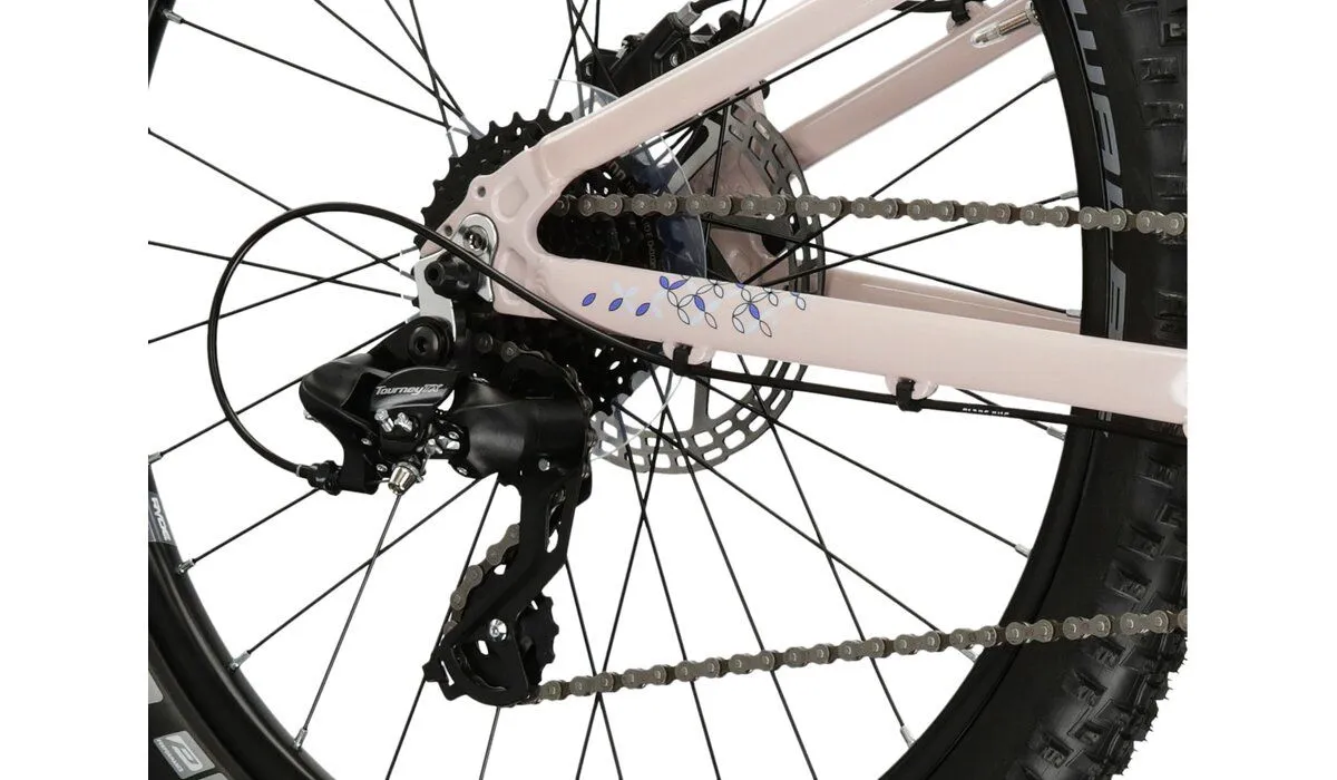 W rowerze KROSS Lea JR 2.0 zastosowano zaawansowane technologicznie komponenty, które gwarantują płynność jazdy i bezpieczeństwo na każdym etapie przygody. Tylna ośmiorzędowa przerzutka SHIMANO TOURNEY TX800, obsługiwana za pomocą manetki Shimano Altus, zapewnia precyzyjne zmiany biegów, umożliwiając dziecku komfortową jazdę w różnorodnych warunkach terenowych. Ponadto, hydrauliczne hamulce tarczowe Shimano MT200 to element, który nie tylko gwarantuje wysoką moc hamowania, ale także doskonałą modulację siły hamowania, co jest kluczowe dla początkujących rowerzystek.