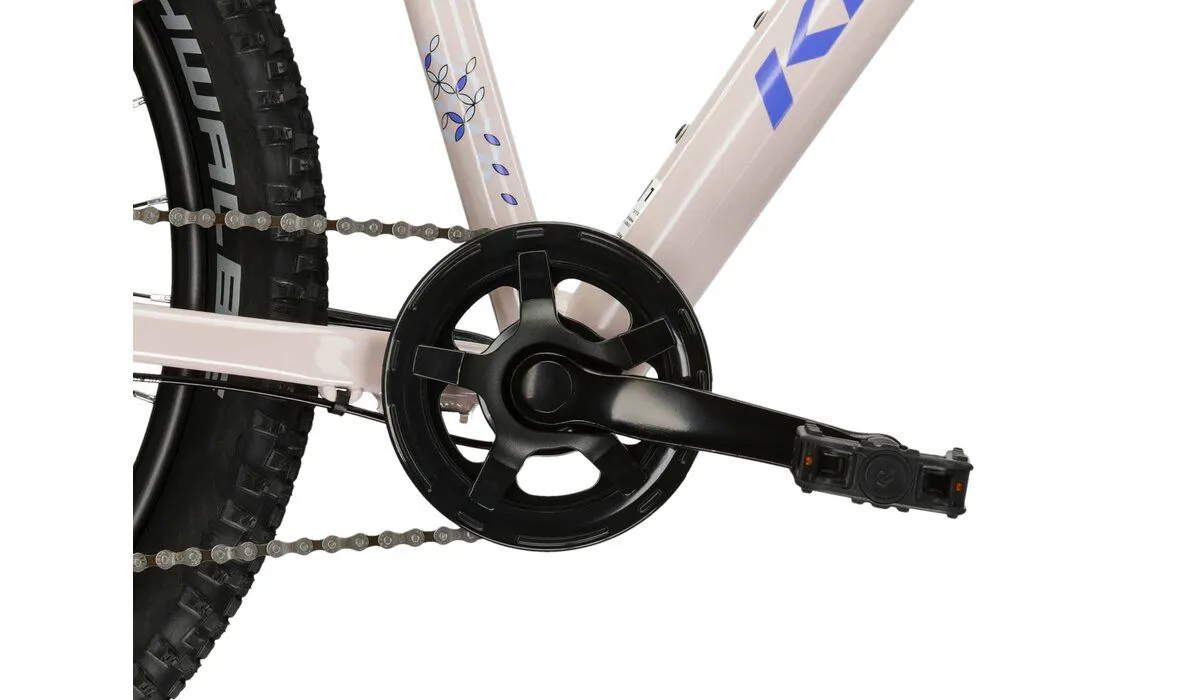 Sztywny aluminiowy widelec zapewnia stabilność i precyzyjne prowadzenie nawet w trudnych warunkach terenowych, co przekłada się na większe poczucie bezpieczeństwa podczas jazdy. Opony Schwalbe Smart Sam o szerokości 2,45 cala zapewniają doskonałą przyczepność i komfort jazdy, pozwalając młodym rowerzystkom pewnie pokonywać każdy rodzaj terenu.