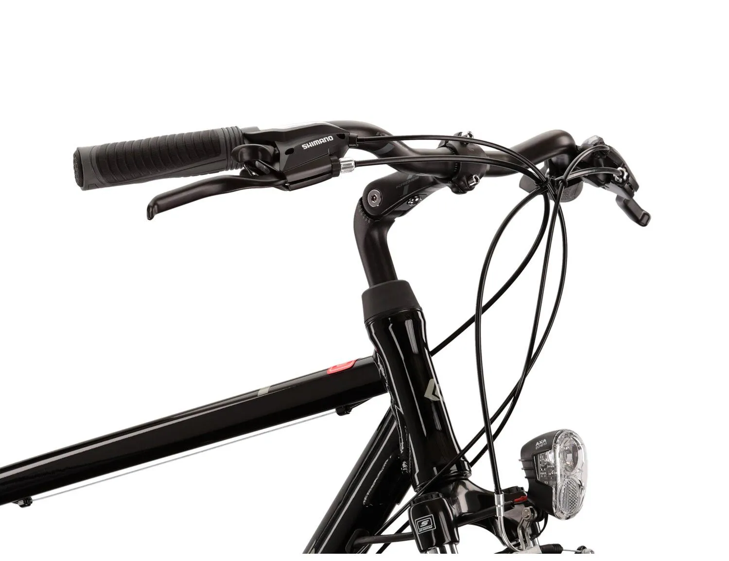 W KROSS Trans 3.0 zamontowaliśmy wysokiej jakości hamulce, które zapewnią ci dużą siłę hamowania zarówno na asfalcie, jak i na leśnej ścieżce. Opony o szerokości 1,6” pozwalają na stosowanie roweru w praktycznie każdych warunkach atmosferycznych, a także zapewnią długą eksploatację. Ponadto wyposażony jest on w wysokiej jakości napęd składający się z komponentów Shimano. Dzięki zastosowaniu tylnej przerzutki Shimano Acera oraz przedniej Tourney udało nam się uzyskać aż 21 przełożeń, które ułatwią pokonywanie stromych wzniesień oraz rozwinięcie wysokiej prędkości na płaskich odcinkach drogi.