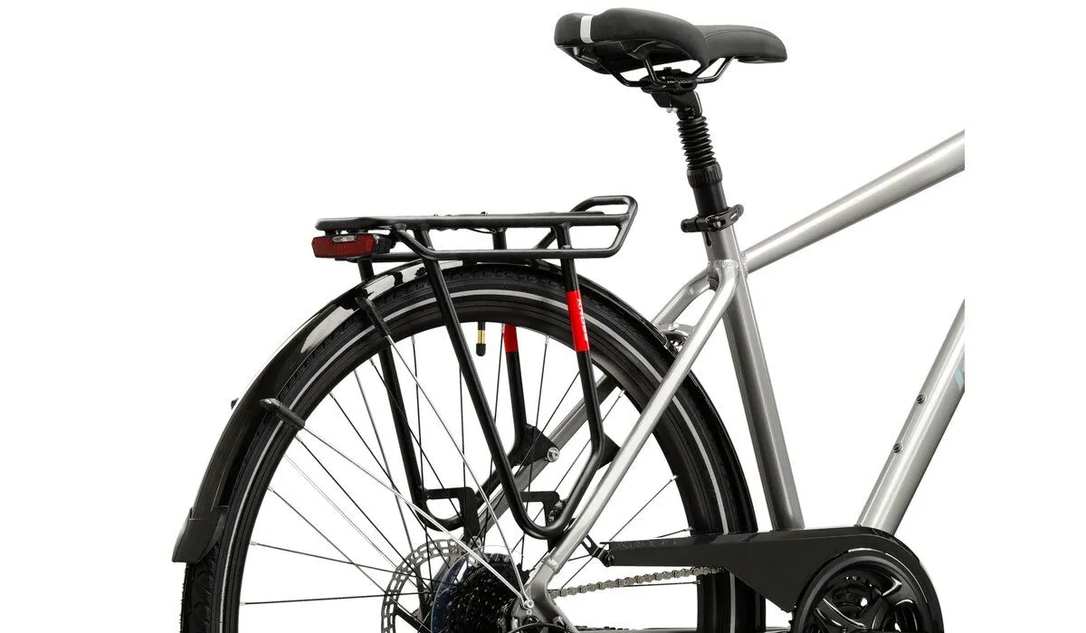 KROSS Trans 3.0 to rower zaprojektowany z myślą o codziennym użytkowaniu. Oprócz niezawodnych komponentów mechanicznych, został on wyposażony w szereg praktycznych akcesoriów, które zwiększają komfort użytkowania. Solidny bagażnik, pełne błotniki, amortyzowana sztyca siodełka oraz oświetlenie sprawiają, że rower ten jest gotowy na każdą wyprawę.