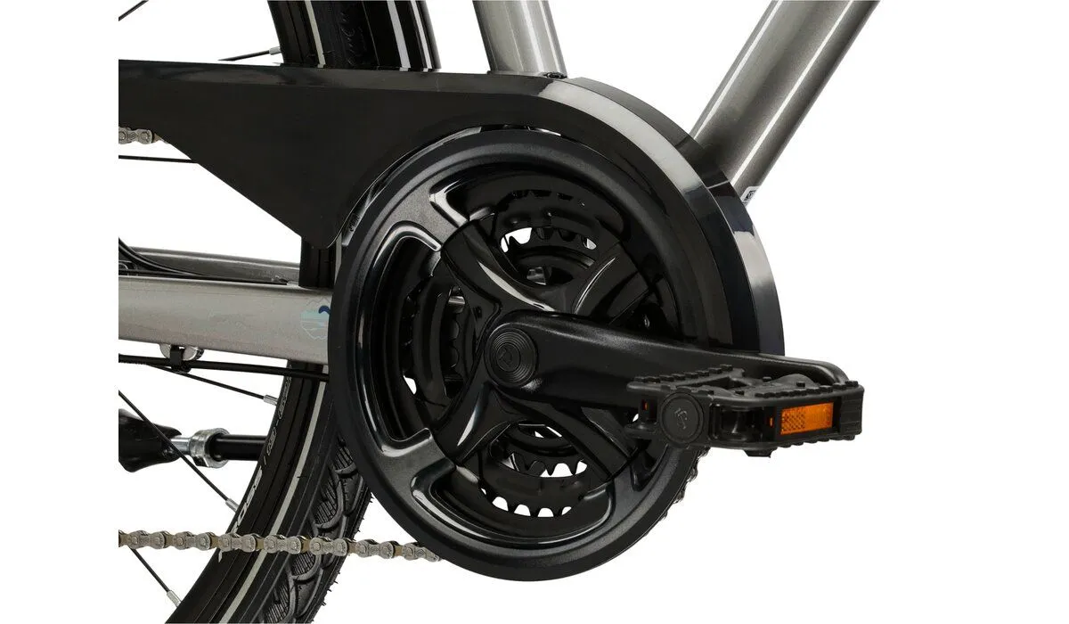 Zintegrowane z rowerem oświetlenie pozwala na bezpieczną jazdę nawet po zmroku, a pełne błotniki zapewniają ochronę przed wodą i błotem w deszczowe dni. Oświetlenie sprawia, że jesteś widoczny na drodze, co znacząco zwiększa bezpieczeństwo, natomiast błotniki chronią zarówno Ciebie, jak i rower przed zabrudzeniami. Dzięki takim rozwiązaniom, KROSS Trans 3.0 jest idealnym rowerem trekkingowym na każdy dzień.