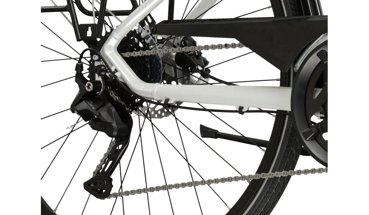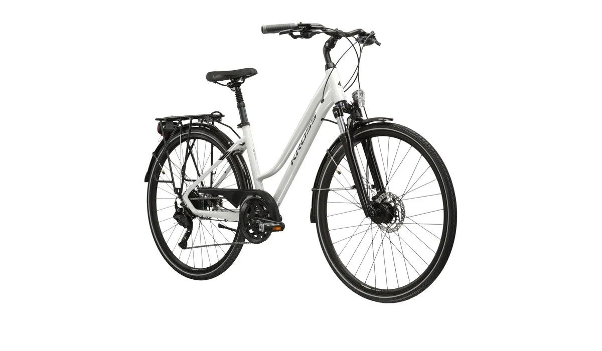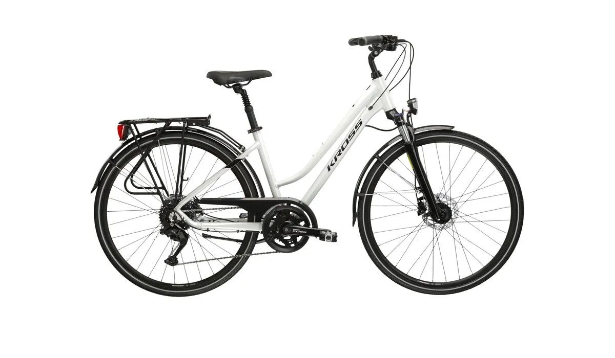 Kross Trans 5.0 to wyjątkowy rower trekkingowy, który łączy w sobie doskonałą jakość wykonania z nowoczesnym designem. Model ten został zaprojektowany z myślą o kobietach, które cenią sobie komfort oraz niezawodność podczas jazdy. Aluminiowa rama w kolorze białym nie tylko prezentuje się elegancko, ale także zapewnia trwałość i lekkość, co jest szczególnie istotne podczas dłuższych wypraw.