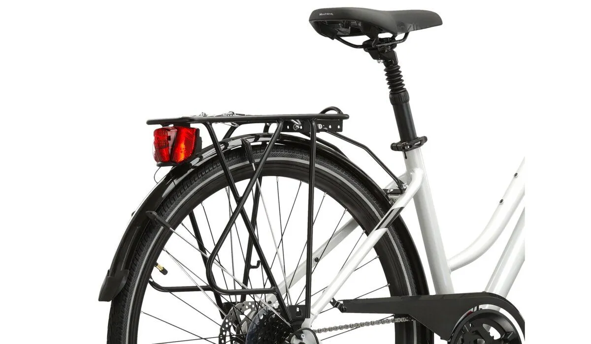 Kross Trans 5.0 został zaprojektowany z myślą o codziennym użytkowaniu, dlatego wyposażono go w szereg funkcjonalnych rozwiązań, które ułatwiają życie rowerzysty. Zintegrowane oświetlenie pozwala na bezpieczną jazdę po zmroku, a wysokiej jakości siodełko Selle Royal, zamontowane na amortyzowanej sztycy, zapewnia komfort nawet podczas długich wypraw. Amortyzowana sztyca niweluje drgania powstające na nierównych nawierzchniach, co jest szczególnie ważne podczas jazdy po mieście, gdzie często napotykamy na różnego rodzaju przeszkody, takie jak krawężniki czy brukowane drogi.