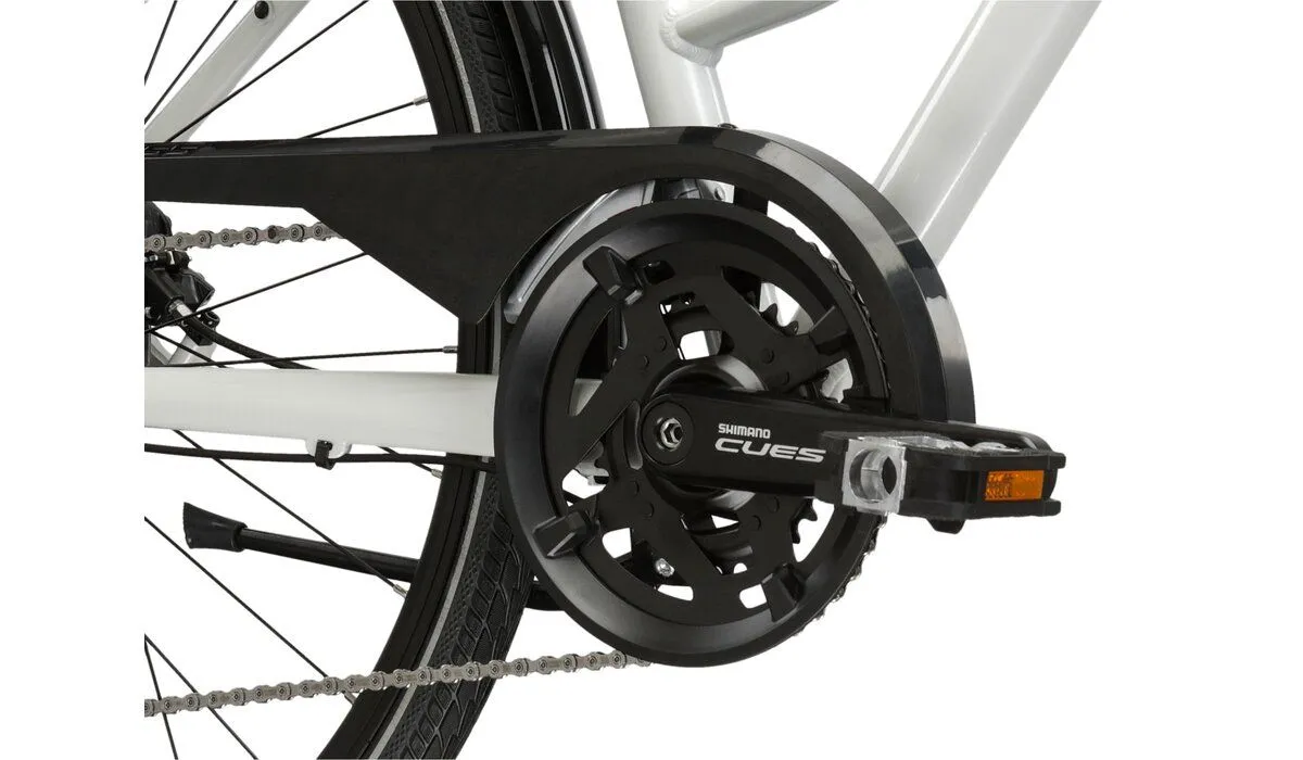 Amortyzowany widelec SR Suntour NEX HLO ze skokiem 63 mm to kolejna technologia, która wspiera rowerzystę podczas jazdy. Widelec ten amortyzuje wstrząsy i drgania, które mogą wystąpić na nierównych nawierzchniach, co znacząco poprawia komfort jazdy. Dodatkowo, blokada znajdująca się w koronie widelca umożliwia łatwiejsze pokonywanie płaskich odcinków trasy, co jest niezwykle przydatne podczas jazdy po mieście.
