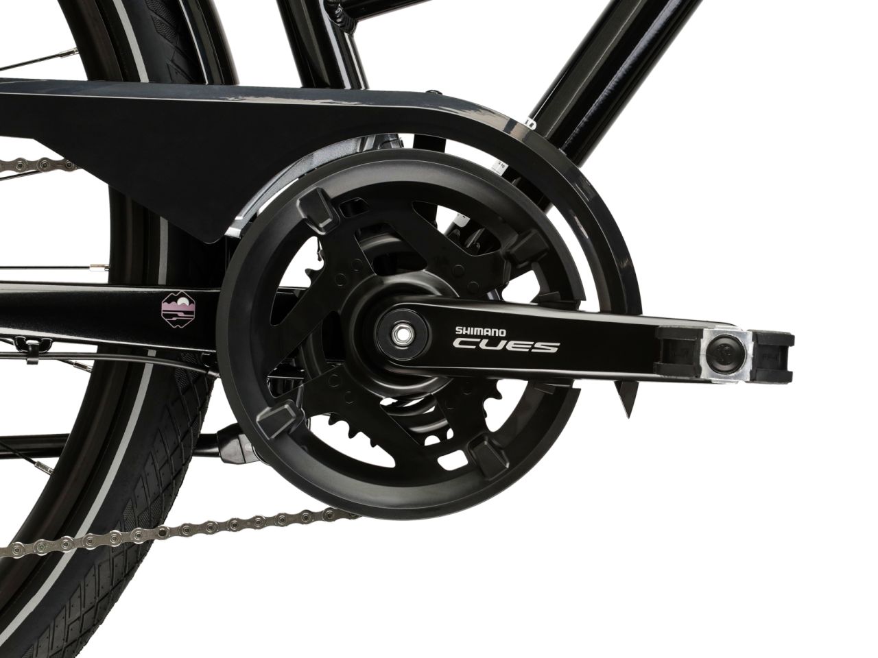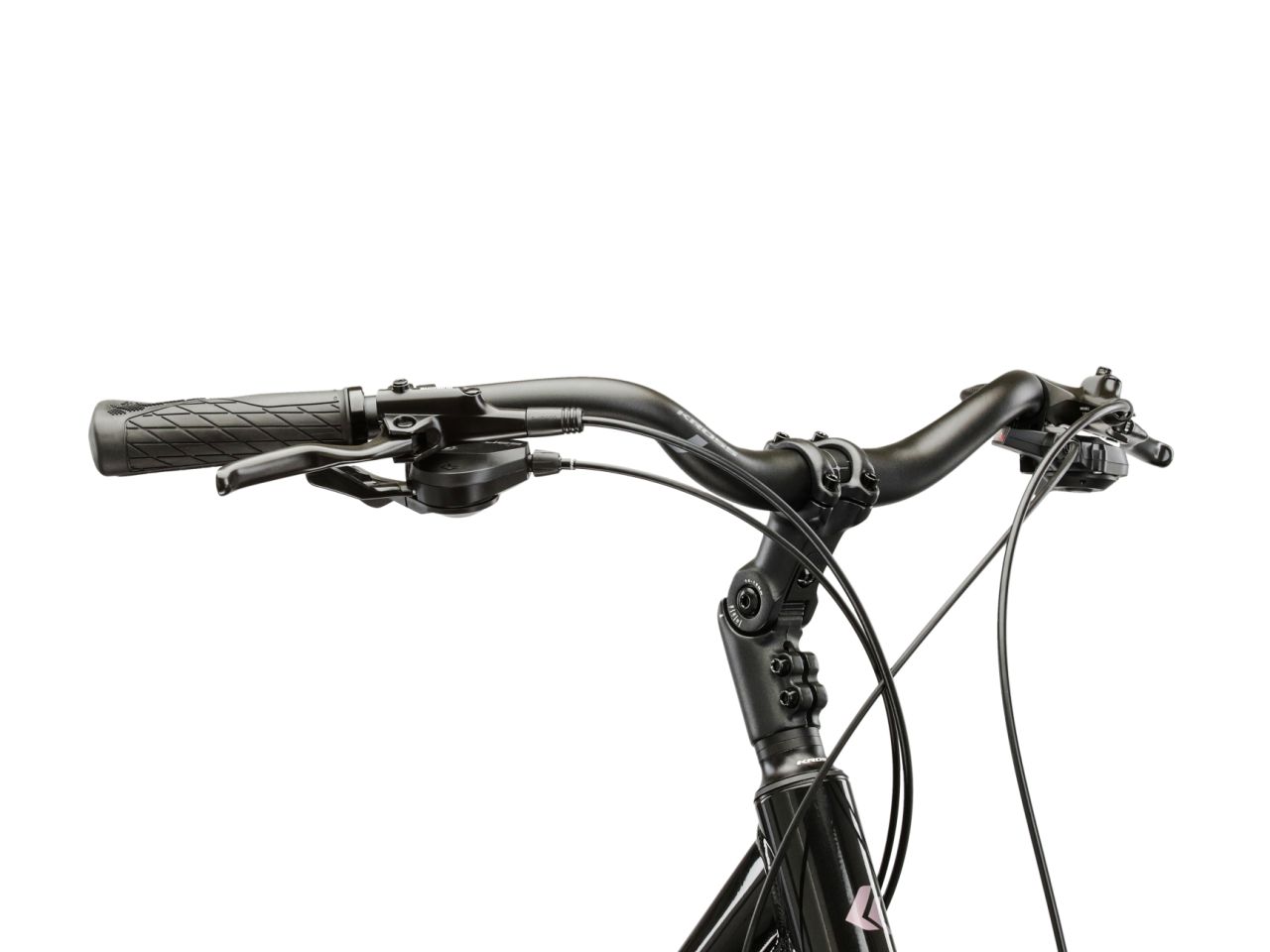 KROSS Trans 7.0 został stworzony z myślą o pełnym komforcie użytkownika, niezależnie od charakteru trasy. Napęd Shimano Cues w konfiguracji 2x10 zapewnia aż 20 przełożeń, które umożliwiają płynne dostosowanie oporu do nachylenia terenu czy rodzaju nawierzchni. Tylna przerzutka z grupy Cues gwarantuje precyzyjną zmianę biegów oraz wysoką trwałość, dzięki czemu sprawdzi się doskonale zarówno podczas jazdy rekreacyjnej, jak i dłuższych wypraw.
