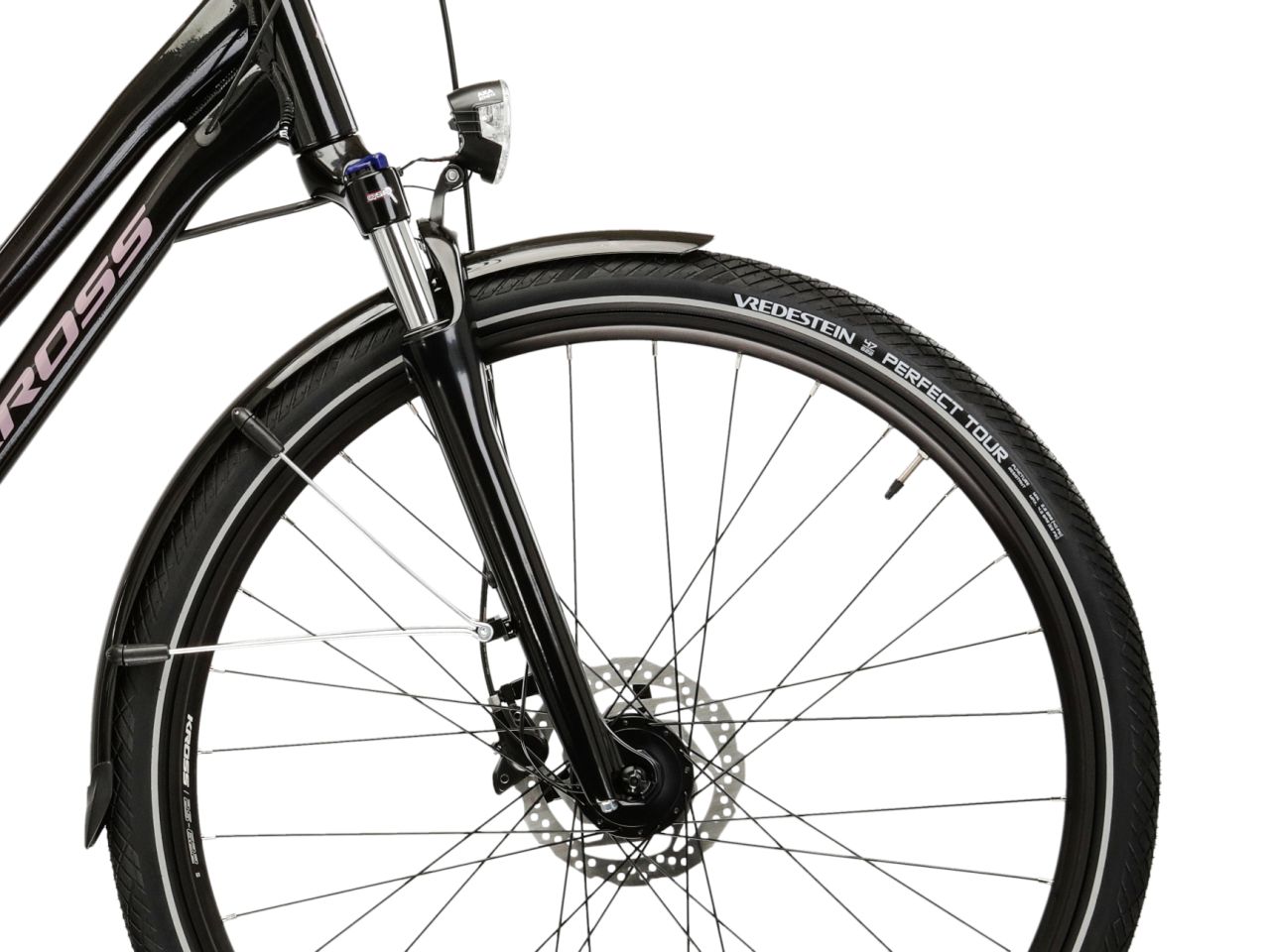 KROSS Trans 7.0 to rower, który świetnie sprawdzi się w codziennym użytkowaniu. Zintegrowane oświetlenie znacząco podnosi bezpieczeństwo jazdy po zmroku, a wysokiej jakości siodełko Selle Royal gwarantuje wysoki poziom komfortu nawet podczas wielogodzinnych tras. Dodatkowo, amortyzowana sztyca siodła skutecznie tłumi drgania i nierówności, dzięki czemu jazda po kostce brukowej, krawężnikach czy leśnych ścieżkach staje się znacznie przyjemniejsza.