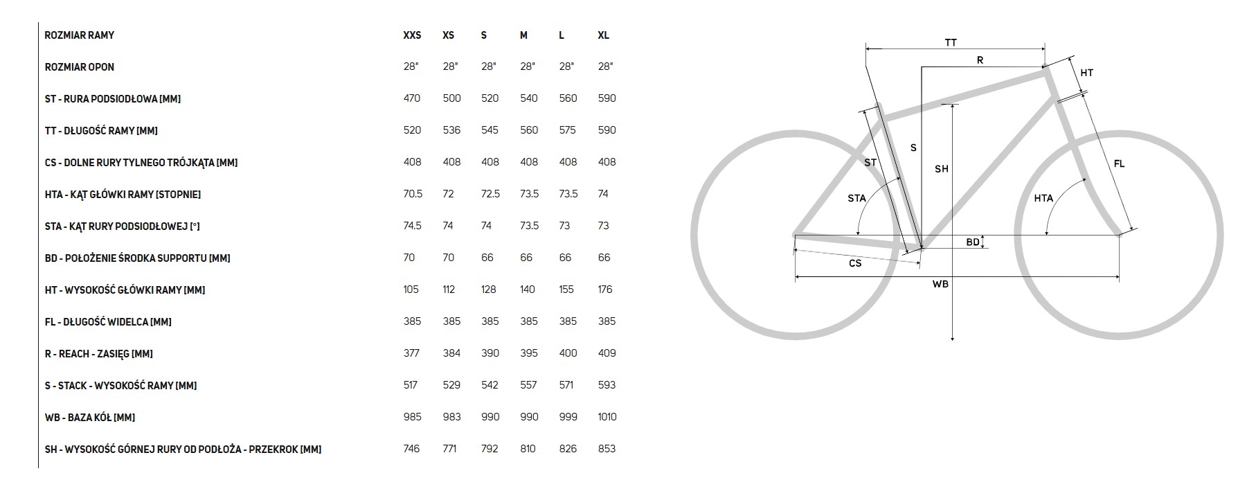 Rozmiary ramy: XXS, XS, S, M, L, XL