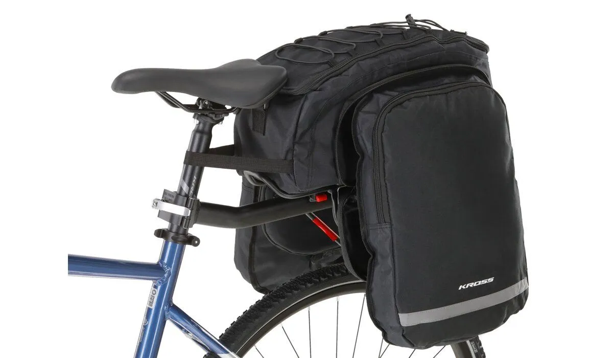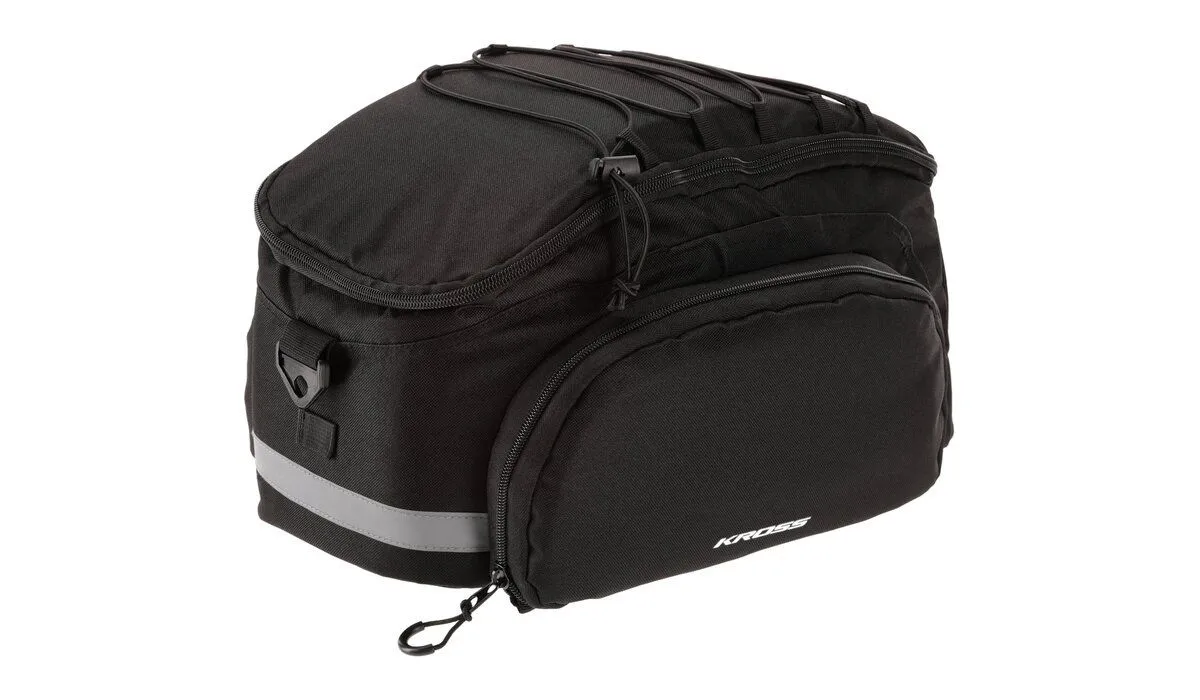 Torba Roamer Trunk Big Bag Carry More jest modelem przystosowanym do szybkiego zamykania, który występuje w bagażnikach Kross z systemem Carry More. Technologia ta pomaga w szybki i stabilny sposób zamocować torbę na bagażniku za pomocą jednego przycisku. Sakwa rowerowa wykonana została z niezwykle trwałego materiału, który jest odporny na uszkodzenia czy otarcia. Torba posiada zgrabny kształt, który świetnie pasuje zarówno do rowerów miejskich, jak i górskich. Produkt posiada główną komorę wraz z ustawnym organizerem. Poza tym wyposażony jest w dwie boczne kieszenie i pasek odblaskowy, który można dostrzec ze znacznej odległości. W zestawie znajduje się pasek, który służy do noszenia torby na ramieniu, co jest bardzo wygodnym rozwiązaniem. Torba Roamer Trunk Big Bag Carry More More waży nieco ponad 1 kg.