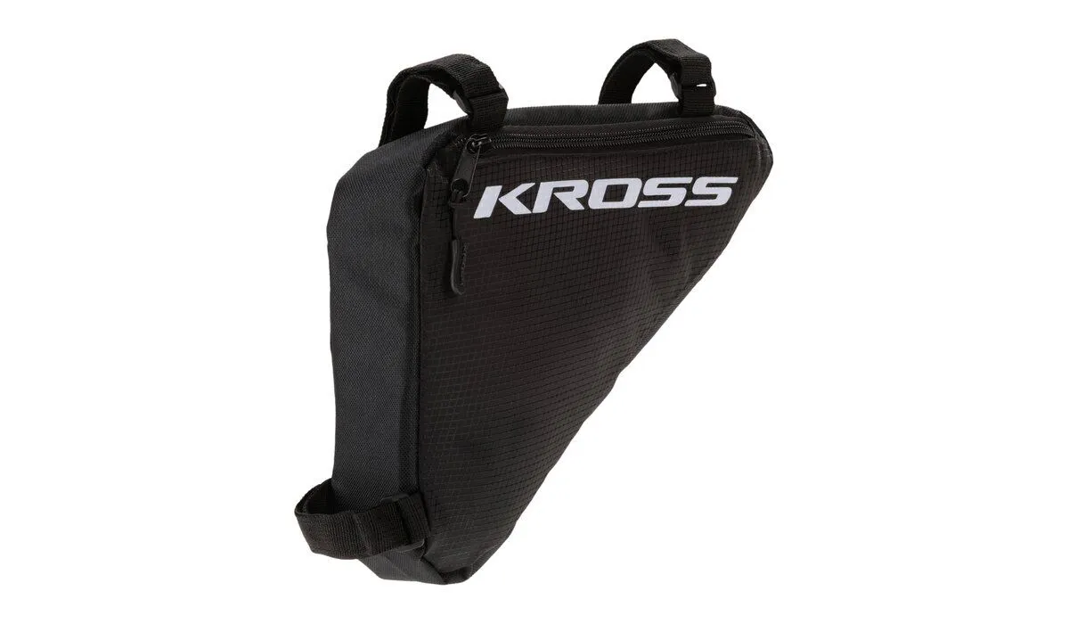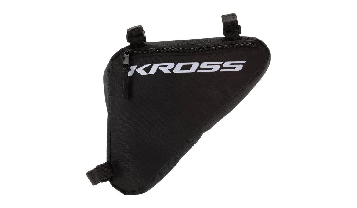 Triangle Bag Kross to torebka stworzona z myślą o miłośnikach wycieczek rowerowych. Wykonano ją z poliestru, materiału wytrzymałego i odpornego na uszkodzenia. Torba wyposażona jest w trwałe zamki, które pozwalają na długie użytkowanie. Mocowana jest za pomocą rzepu do górnej rury ramy roweru, dzięki czemu nie krępuje ruchów podczas jazdy.