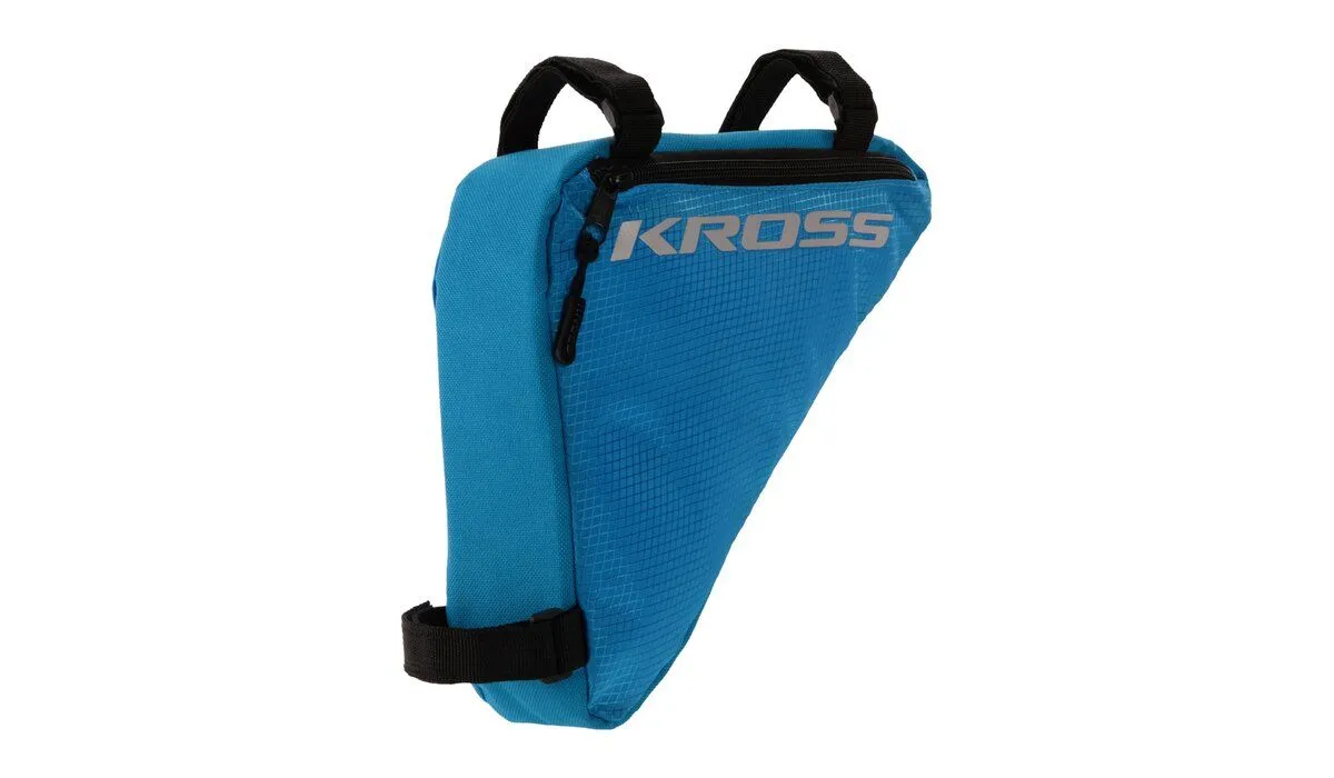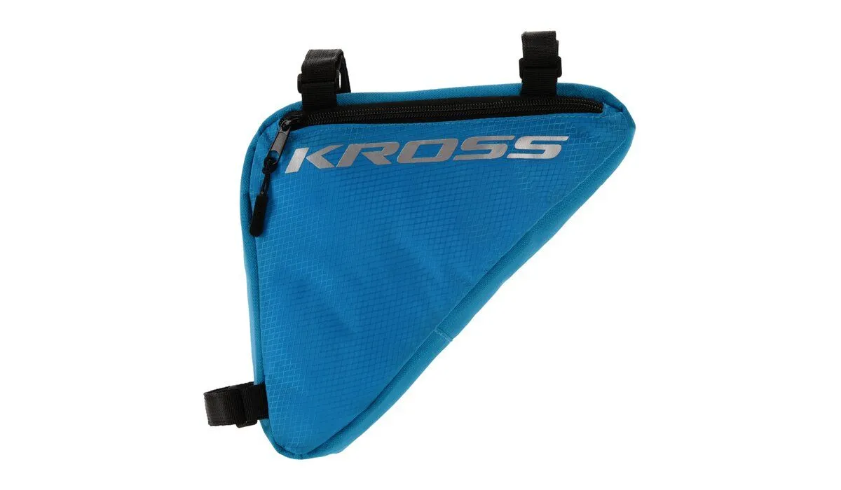 Triangle Bag Kross to torebka stworzona z myślą o miłośnikach wycieczek rowerowych. Wykonano ją z poliestru, materiału wytrzymałego i odpornego na uszkodzenia. Torba wyposażona jest w trwałe zamki, które pozwalają na długie użytkowanie. Mocowana jest za pomocą rzepu do górnej rury ramy roweru, dzięki czemu nie krępuje ruchów podczas jazdy.